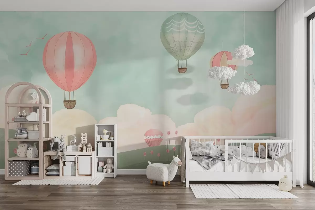 Wall murals Hot air balloons over hills with clouds Nr. w09228