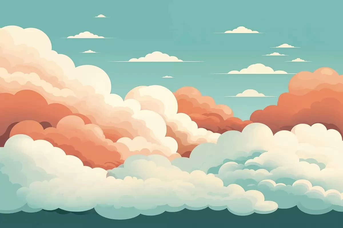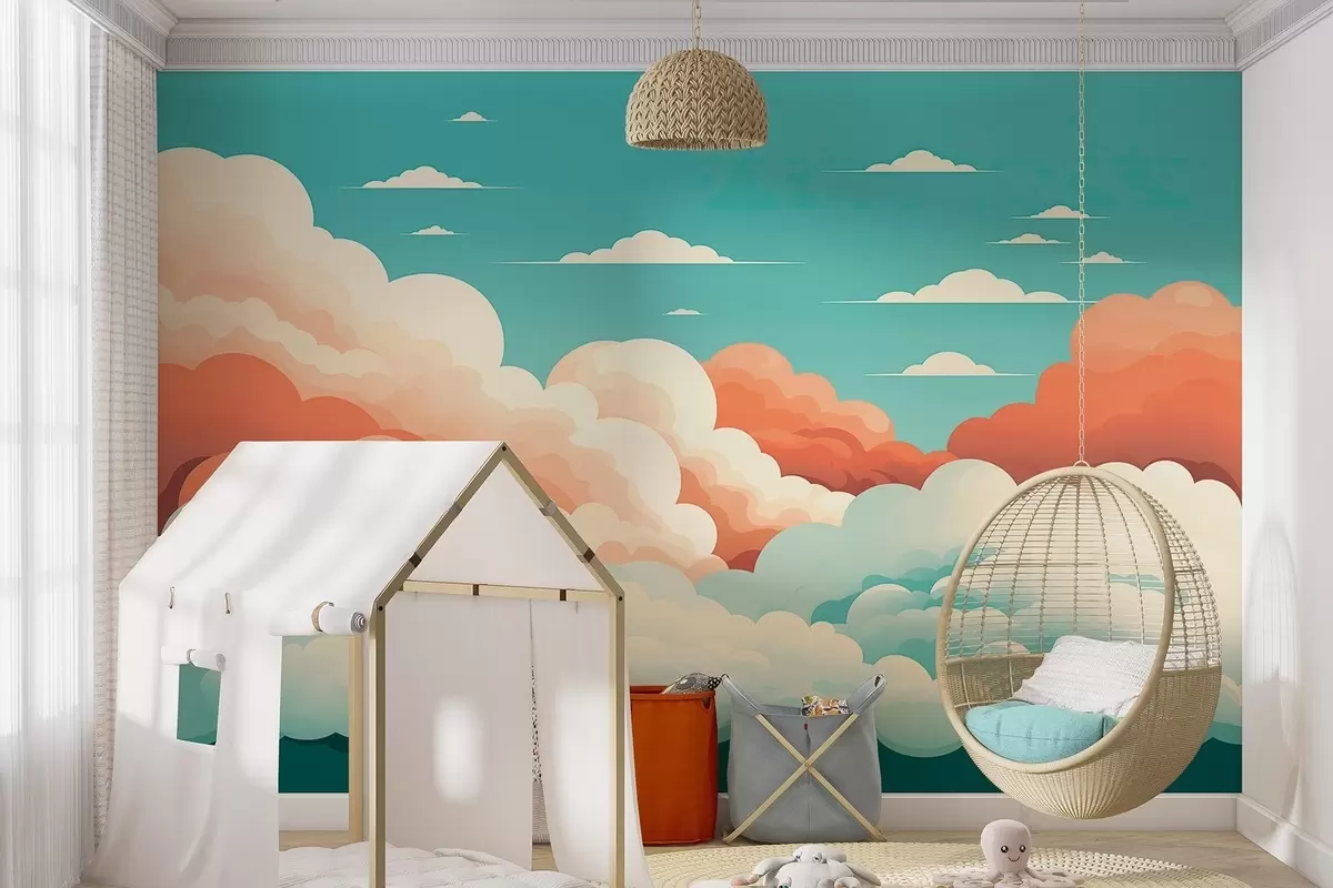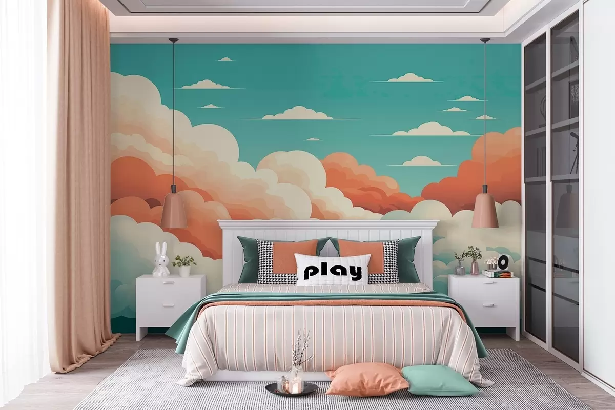 Wall murals Whimsical cartoon-style clouds under a blue sky Nr. w09246