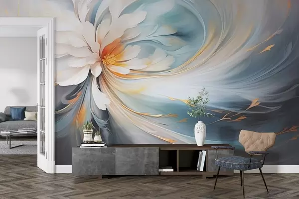 Wall murals Abstract flower in soft blue and orange tones Nr. w09270