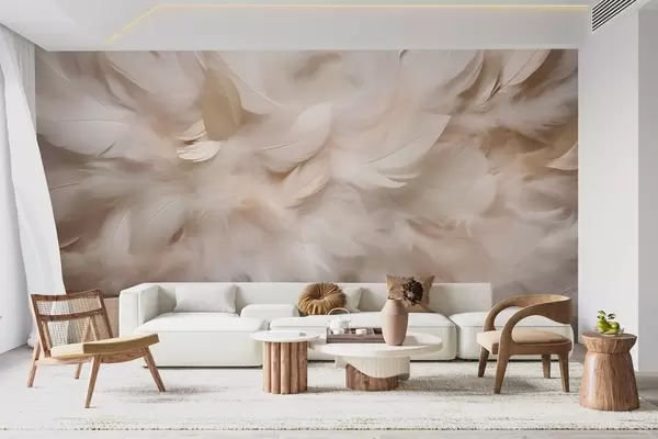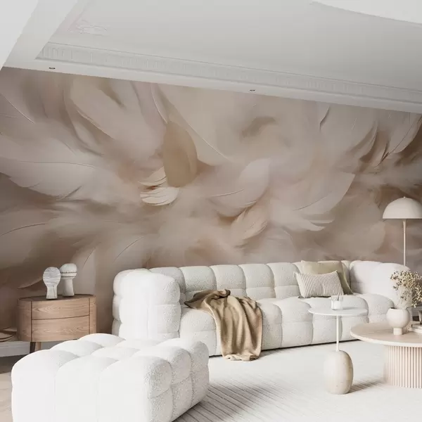Wall murals Fluffy feathers and down in creamy shades Nr. w09274