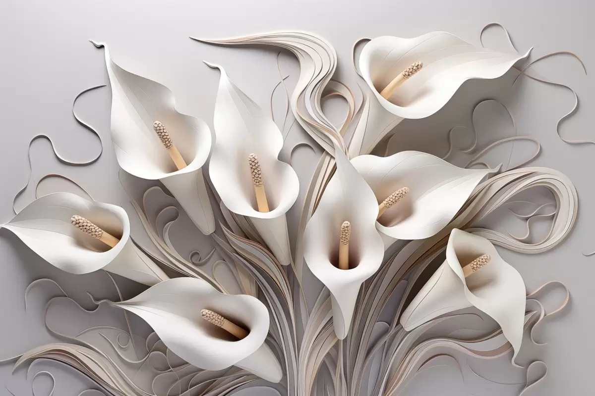 Wall murals Volumetric calla lilies in creamy tones with 3D effect Nr. w09281
