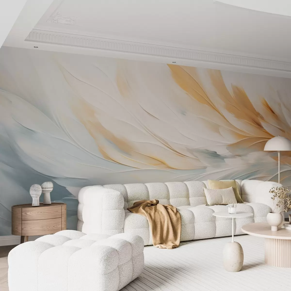 Wall murals Abstract feathers in soft blue and orange tones Nr. w09283