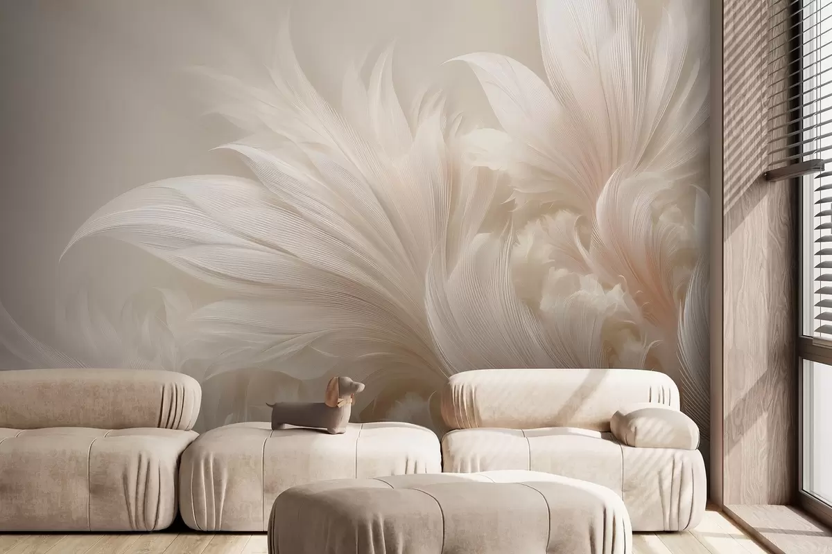 Wall murals Weightless feathers in vanilla cream hues Nr. w09302
