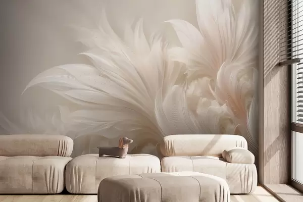 Wall murals Weightless feathers in vanilla cream hues Nr. w09302