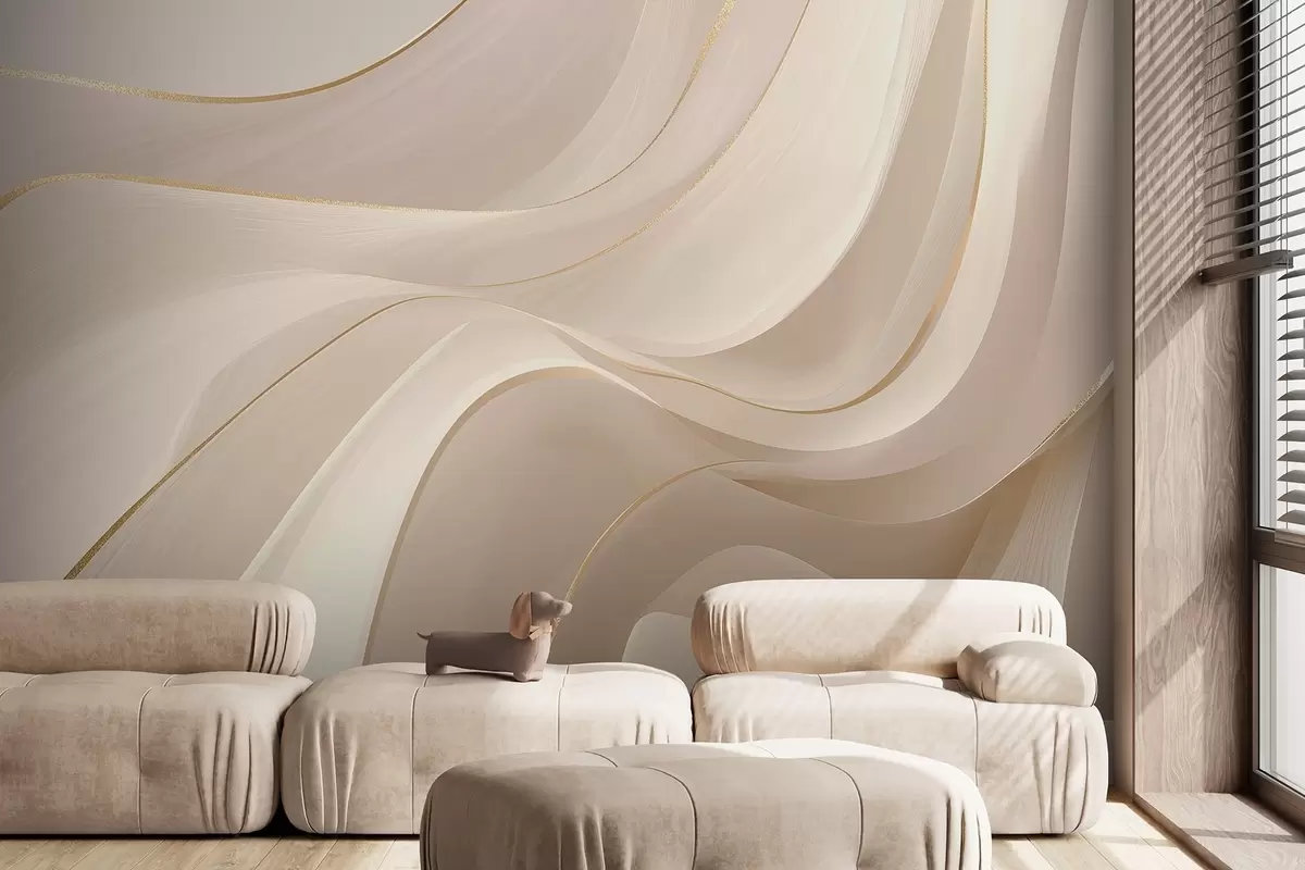 Wall murals Flowing waves with yellow accents in creamy light Nr. w09303