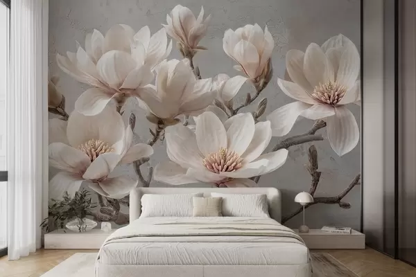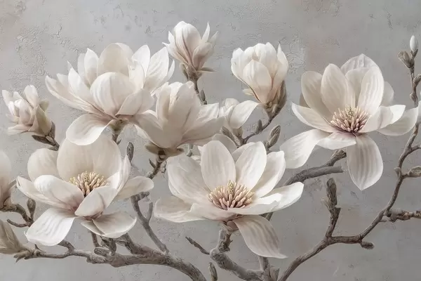 Wall murals Magnolia branches with large light flowers in muted tones Nr. w09305