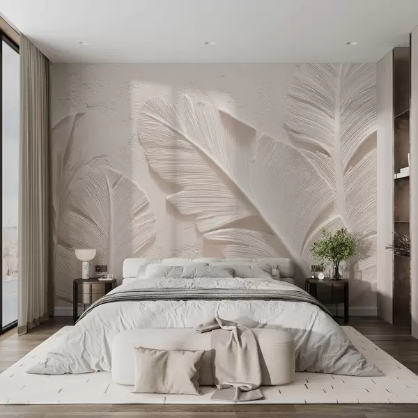 Wall murals Relief leaves in warm beige-sand tones Nr. w09307v1