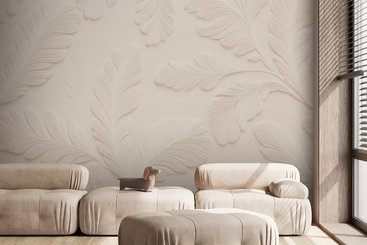 Wall murals Embossed leaves on a light background with a cracked effect Nr. w09309