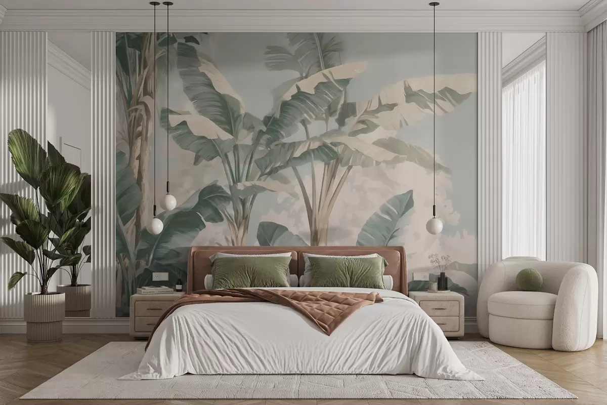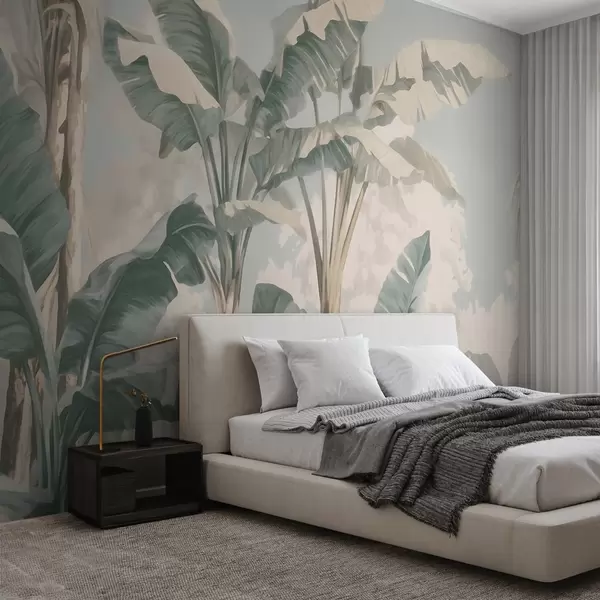 Wall murals Tropical banana leaves in soft pastel tones Nr. w09311