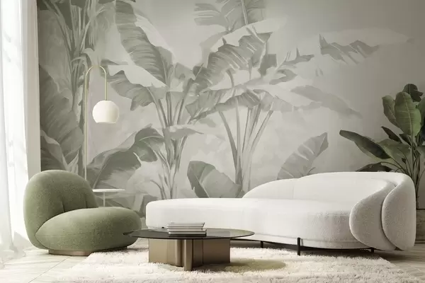 Wall murals Tropical banana leaves in gentle green shades Nr. w09311v1
