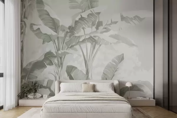 Wall murals Tropical banana leaves in gentle green shades Nr. w09311v1