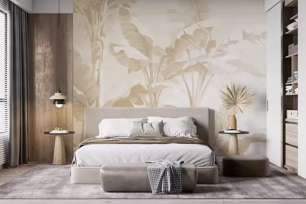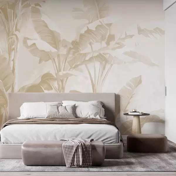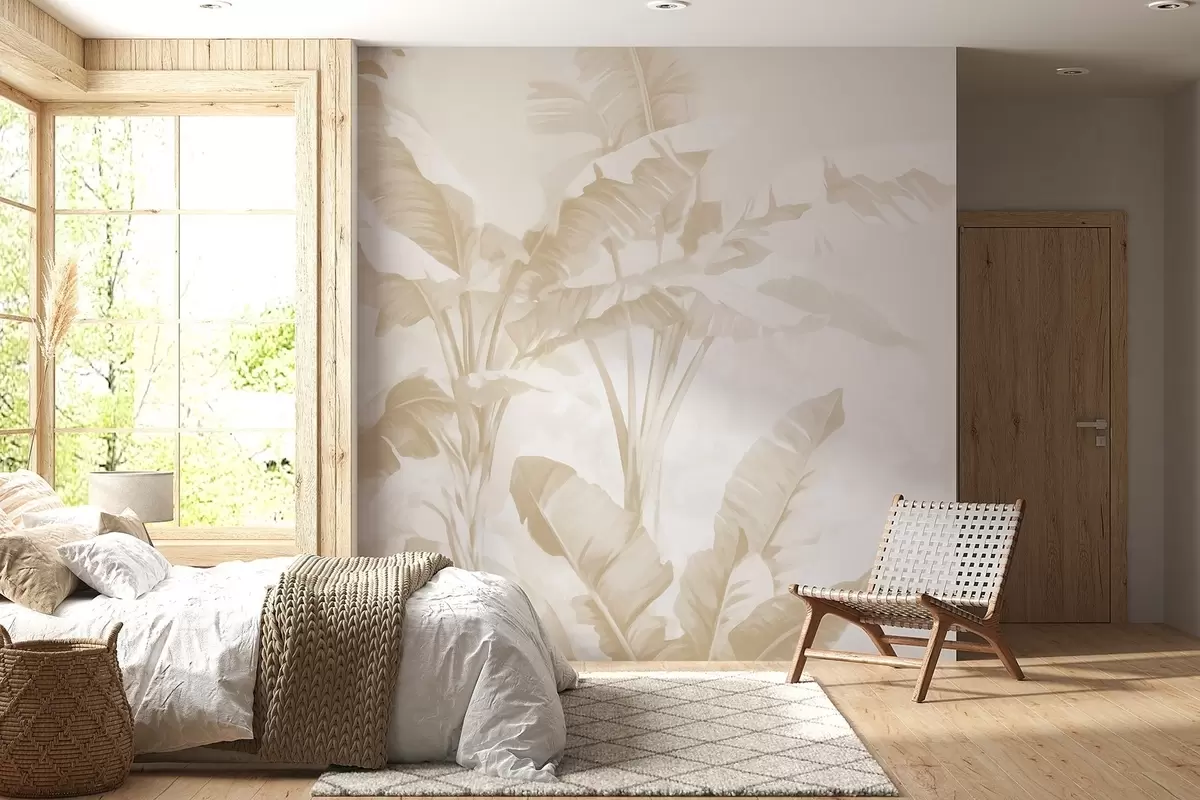 Wall murals Tropical banana leaves in soft beige tones Nr. w09311v2