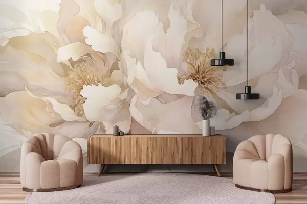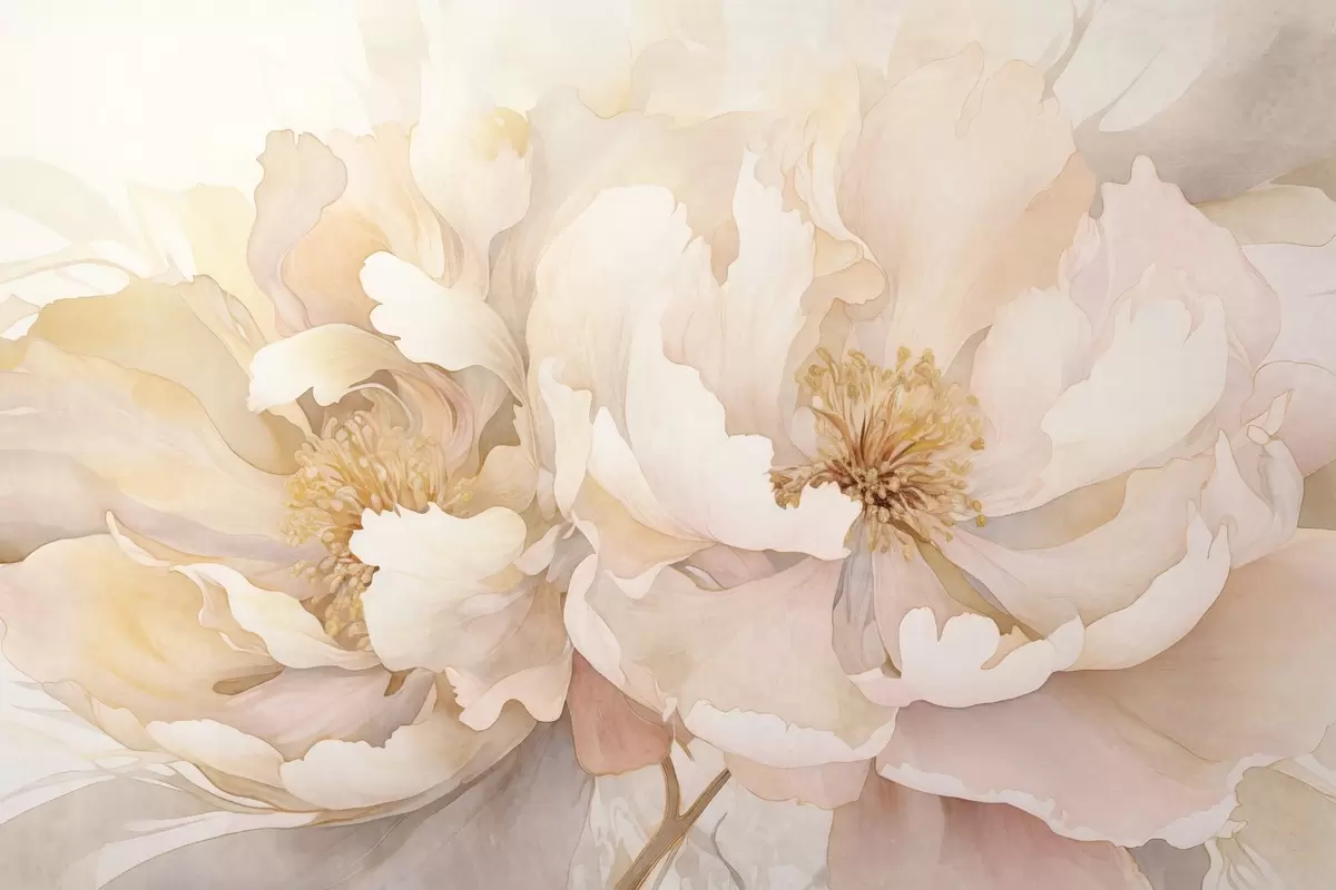 Wall murals Peony textured flowers with delicate petals in shades of cream peach, and light pink with a soft, watercolor-like texture Nr. w09321
