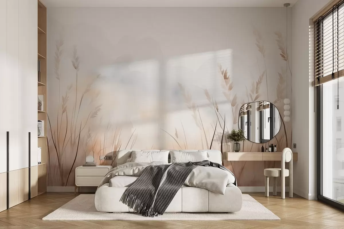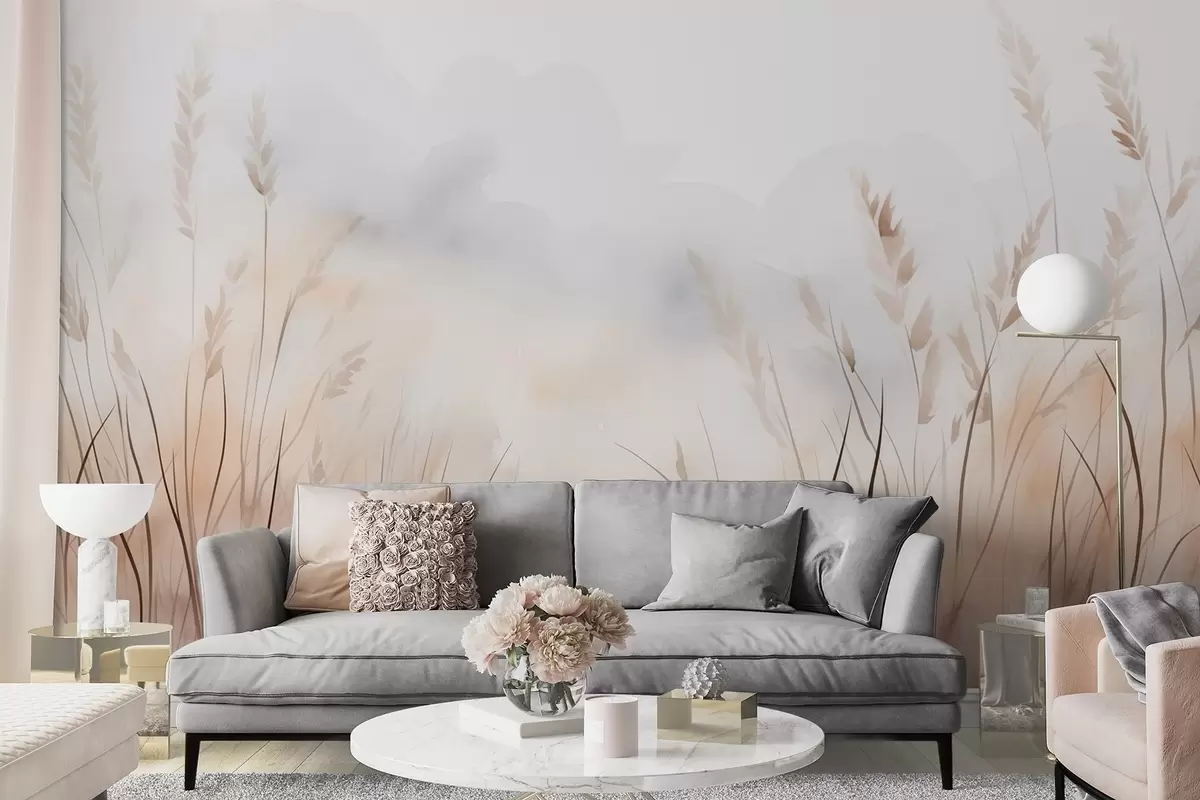 Wall murals Grain ears in mist in soft beige and brown shades Nr. w09327
