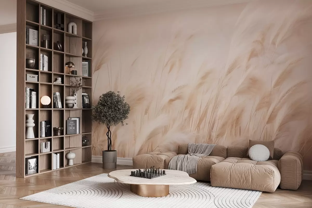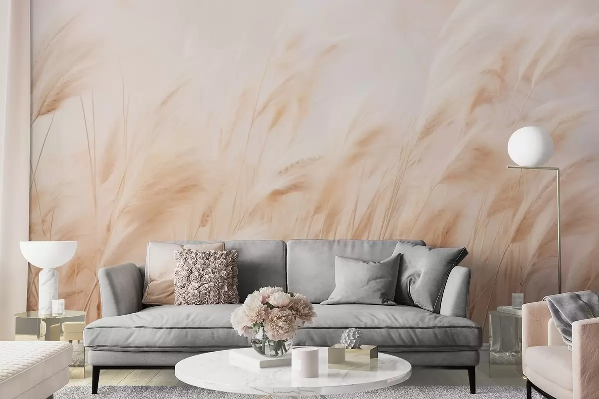 Wall murals Gentle sway of pampas in soft cream and beige tones Nr. w09330