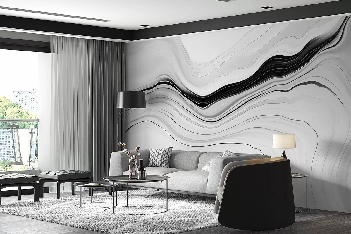 Wall murals Black and white pattern with the effect of marble layers Nr. w09358