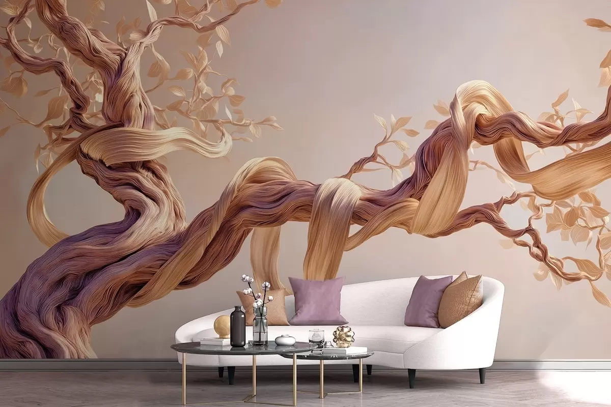 Wall murals Twisted tree trunk with decorative leaves Nr. w09360