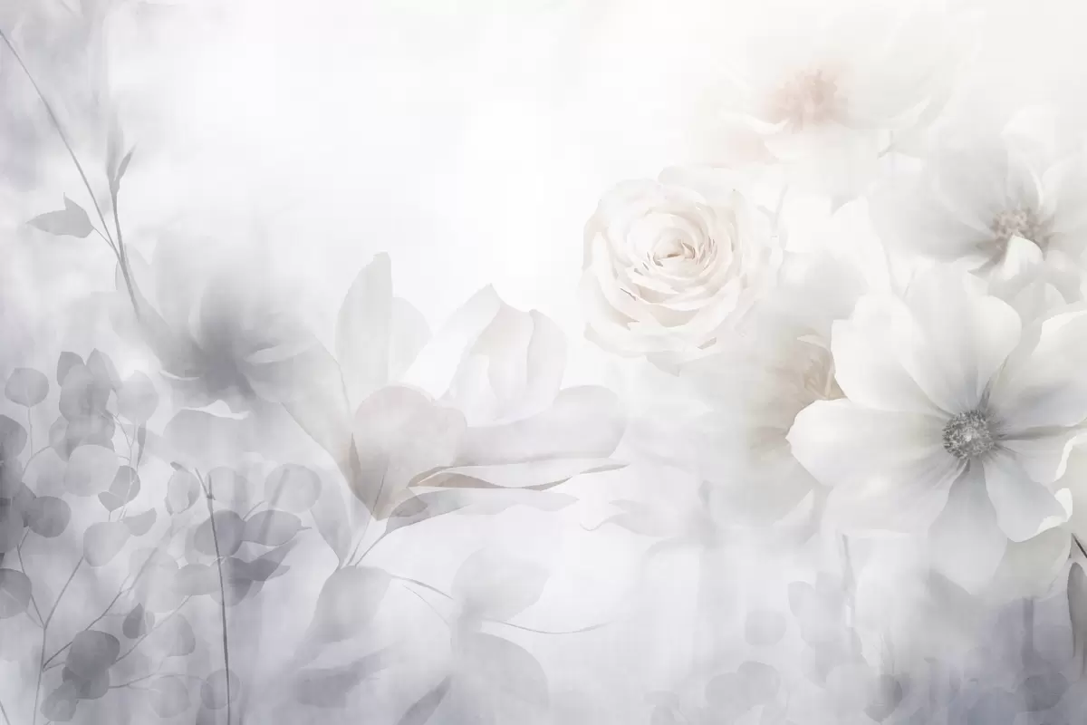 Wall murals A delicate abstract floral arrangement with pastel pink roses and magnolias, soft focus, light gray background Nr. w09371