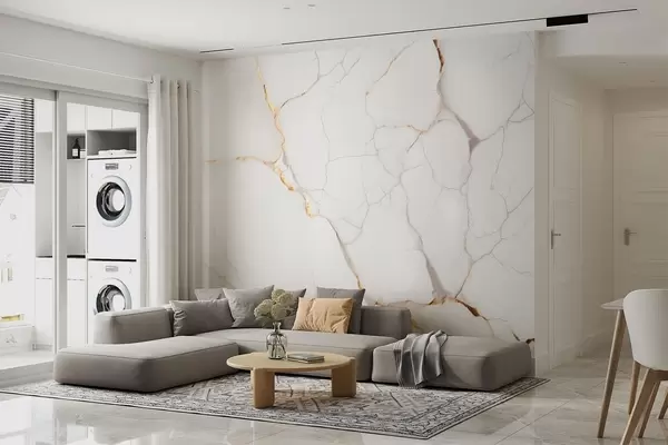 Wall murals Imitation of marble with fine cracks and yellow veins Nr. w09390