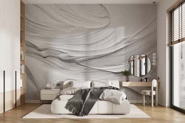 Wall murals Abstract textured white paint strokes imitation with a swirling pattern, neutral, minimalistic modern composition Nr. w09394