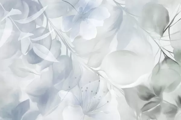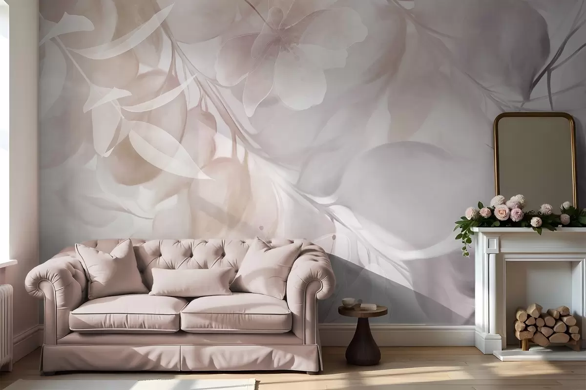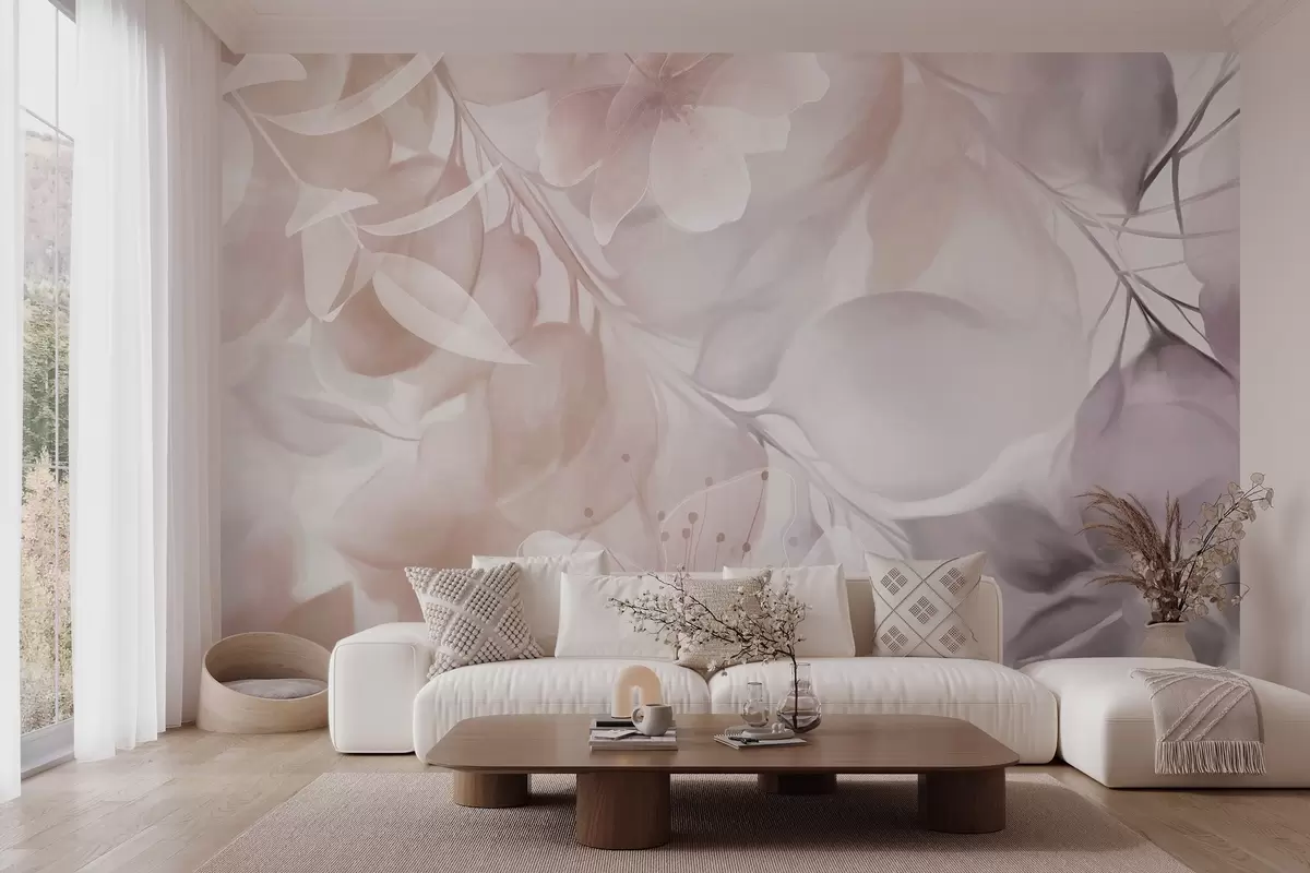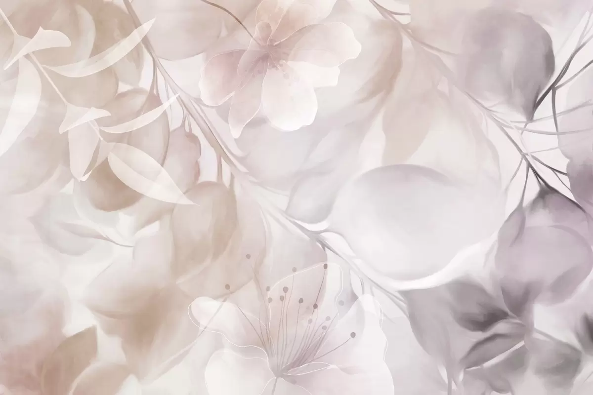 Wall murals Floral art with muted beige and brown flowers, leaves and branches, soft pastel colors, watercolor textured effect Nr. w09397