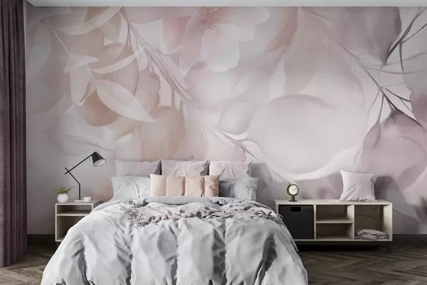 Wall murals Floral art with muted beige and brown flowers, leaves and branches, soft pastel colors, watercolor textured effect Nr. w09397
