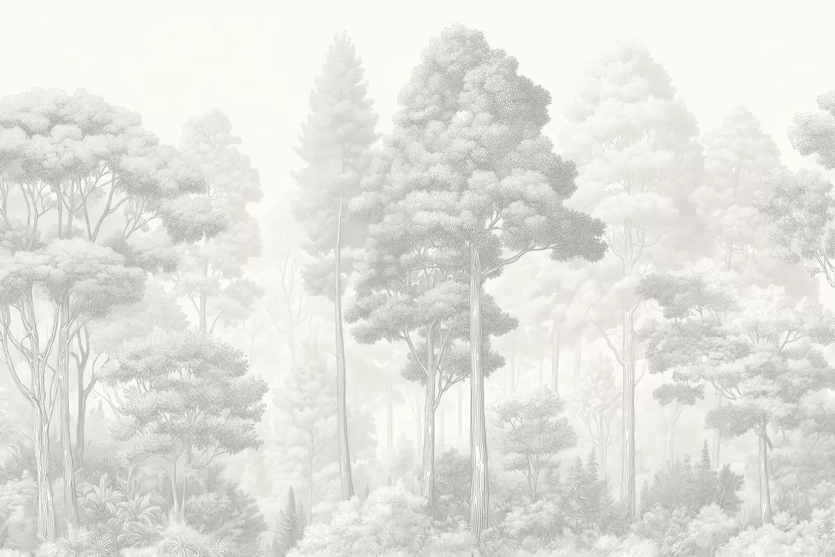 Wall murals Artistic forest landscape in the technique of black-and-white graphic hatching Nr. w09411