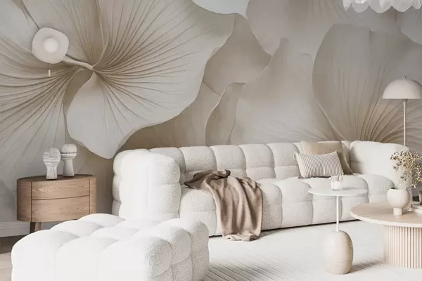 Wall murals White and beige gingko leaves, soft textured, abstract floral background, minimalist modern style Nr. w09421v1