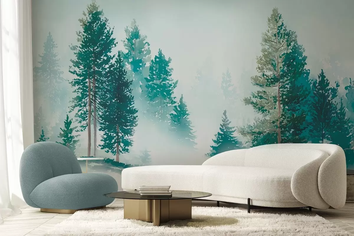 Wall murals Misty pine forest in watercolor style Nr. w09444