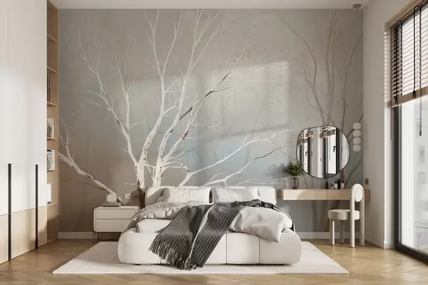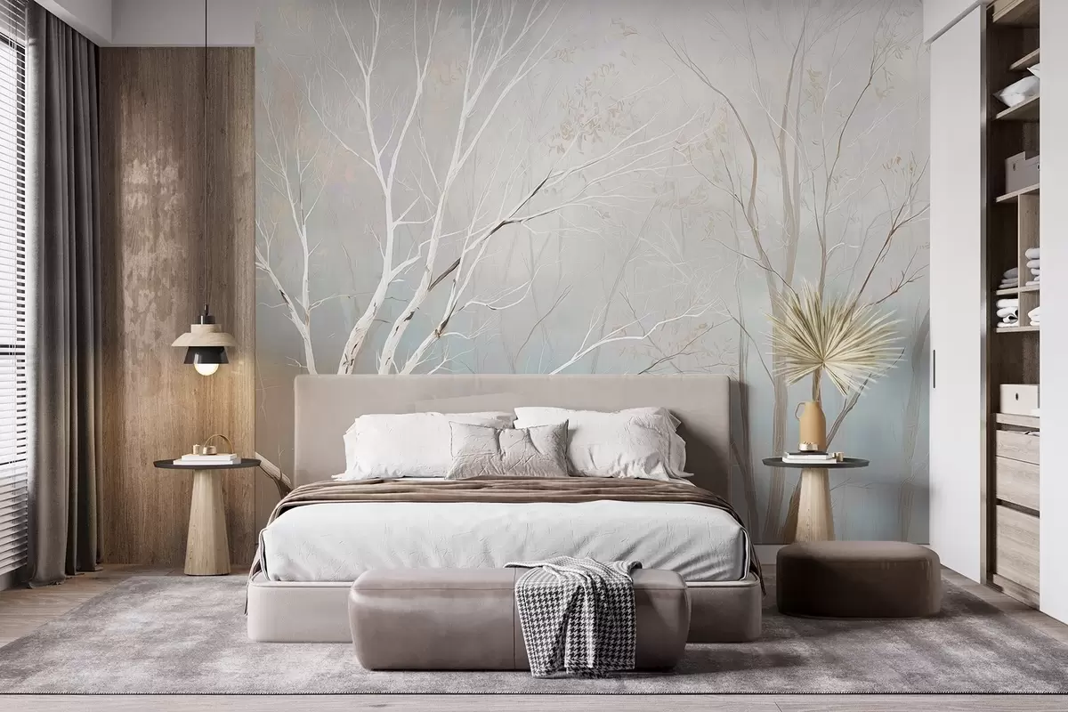 Wall murals Light branches in morning mist in pastel tones Nr. w09447