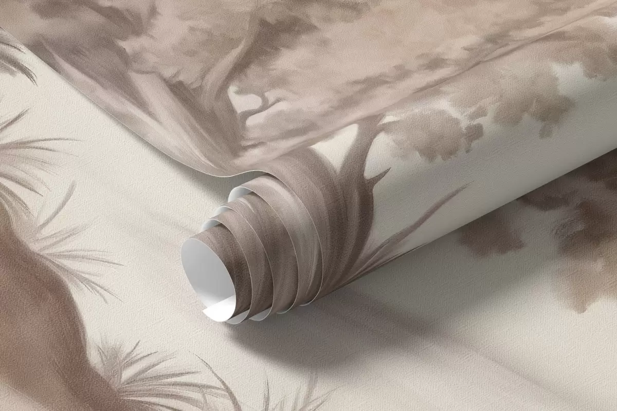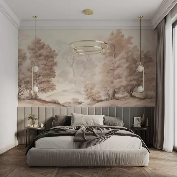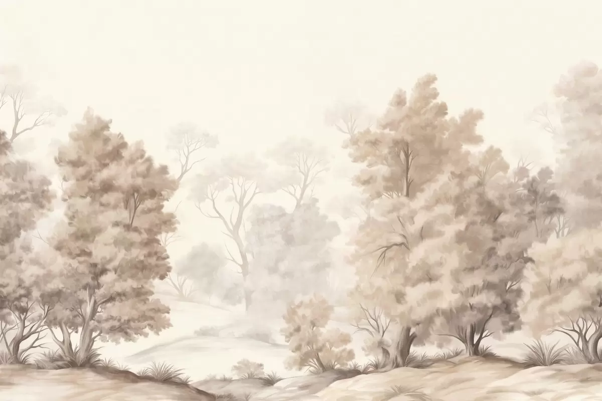 Wall murals Textured landscape painting imitation of a forest with tall trees and grass, muted and soft colors, calming scene Nr. w09474