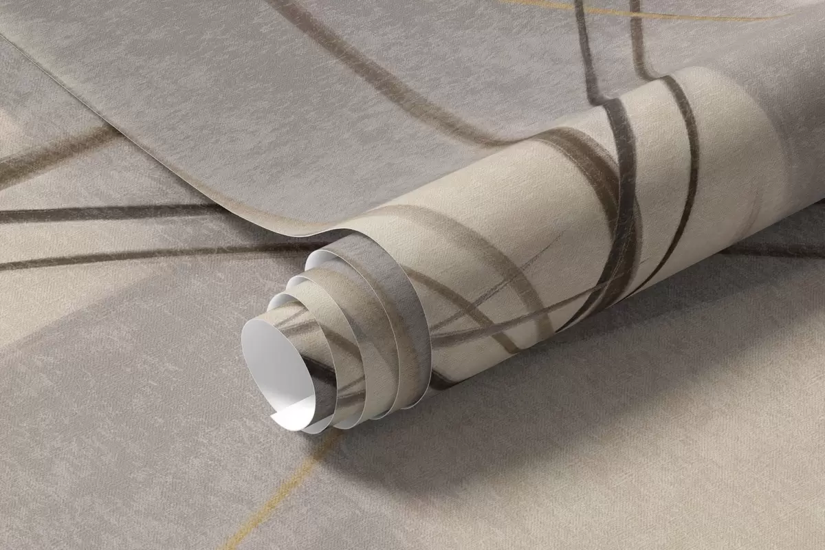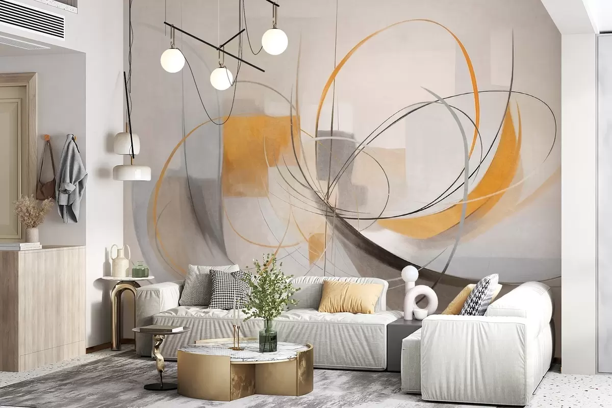 Wall murals Abstract textured modern painting style with curved lines and geometric shapes in shades of gray, white and orange Nr. w09476