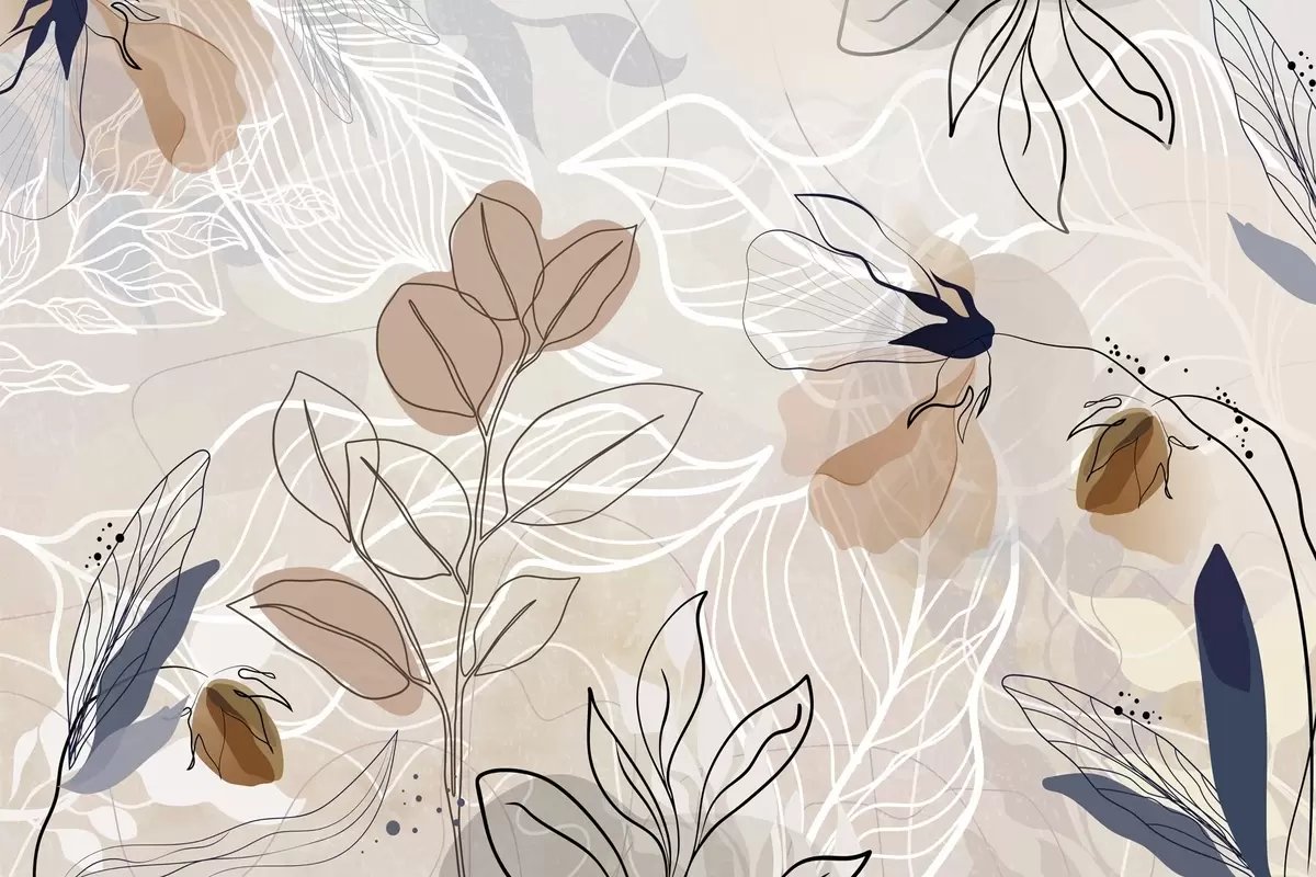 Wall murals Beige abstract background with leaves and flowers line art, modern, minimalist , organic shapes, botanical print Nr. w09487