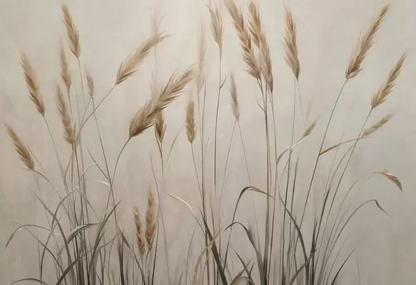 Wall murals Wheat textured field with yellow ears of grain, beige background, natural lighting, warm tones, detailed brushstrokes Nr. w09493