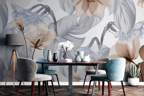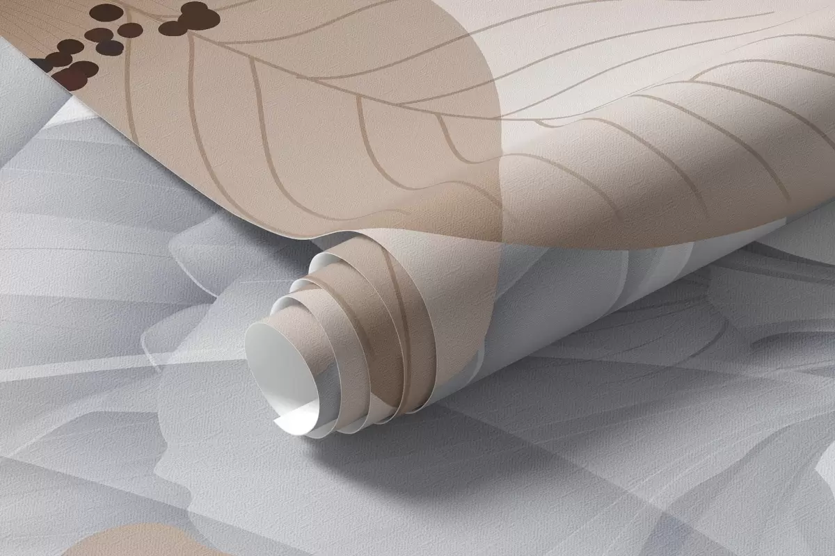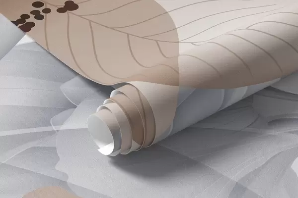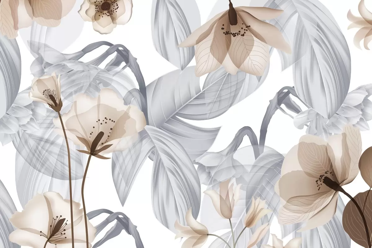 Wall murals Brown flowers and grey leaves, floral botanical background, elegant design, soft colors, light delicate details Nr. w09497v1
