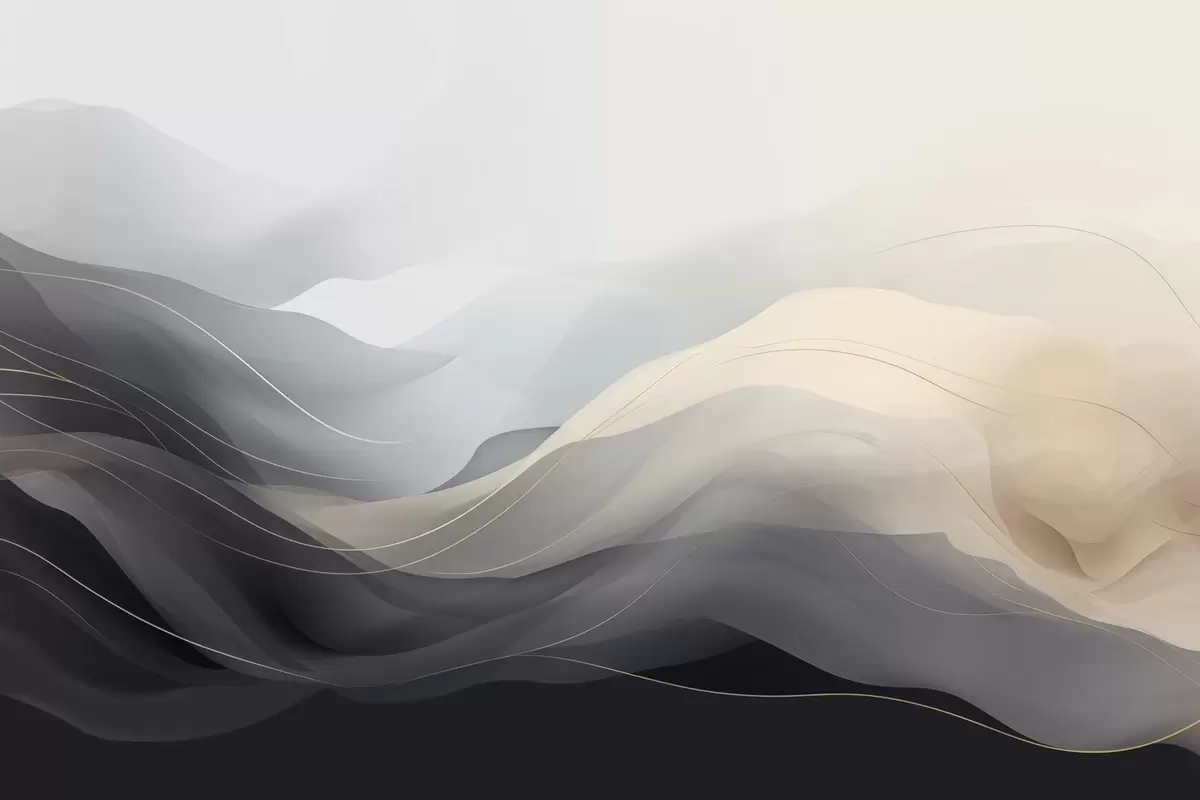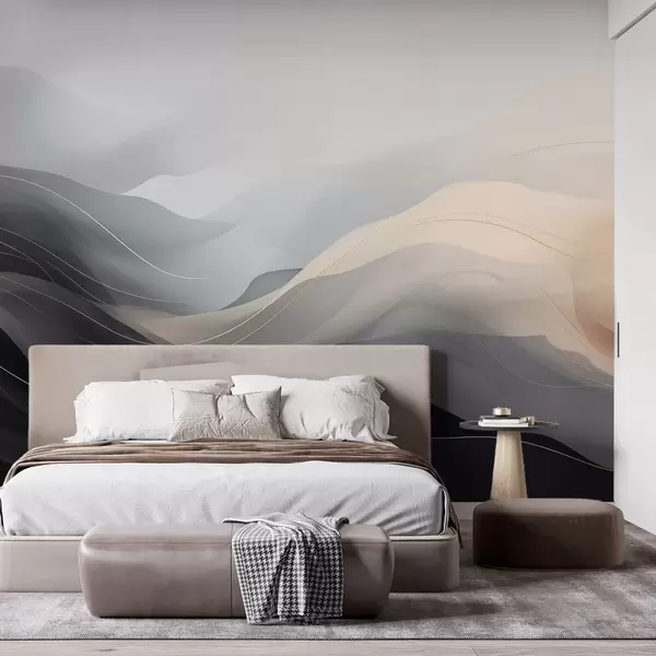 Wall murals Abstract misty waves in gray-cream tones with yellow lines Nr. w09504
