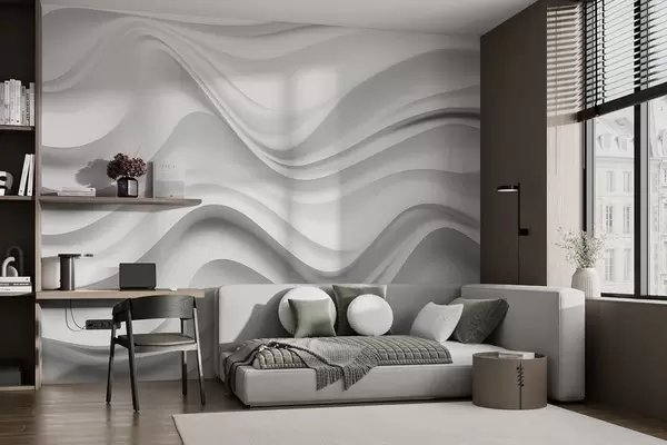 Wall murals Black-and-white abstract 3D composition with smooth waves Nr. w09506
