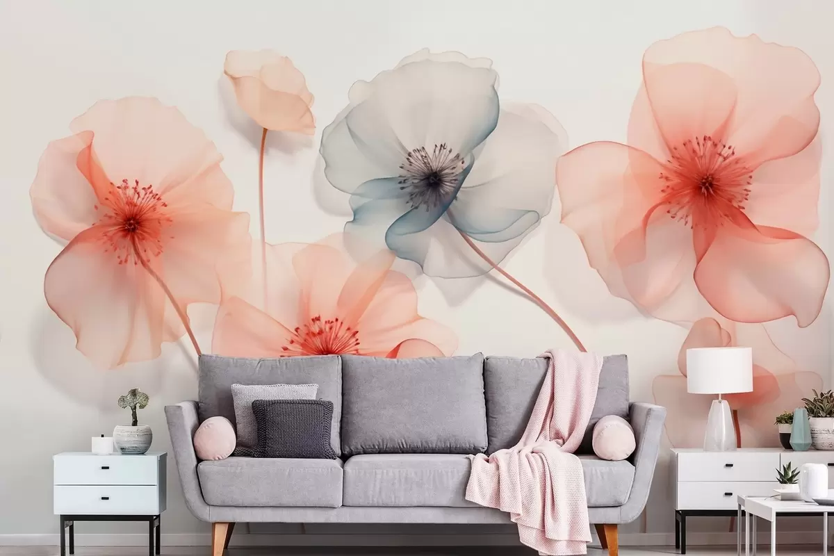 Wall murals Translucent flowers in red and blue tones Nr. w09515