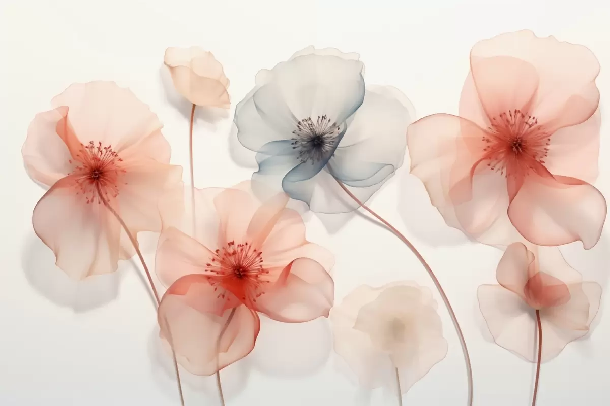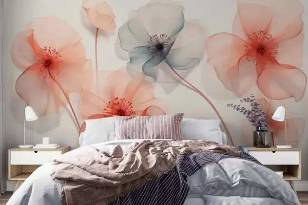 Wall murals Translucent flowers in red and blue tones Nr. w09515