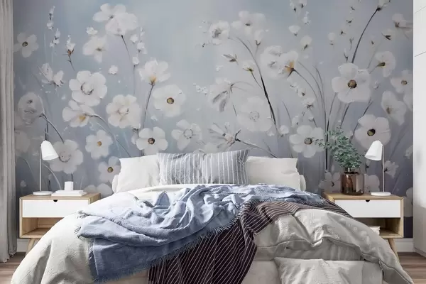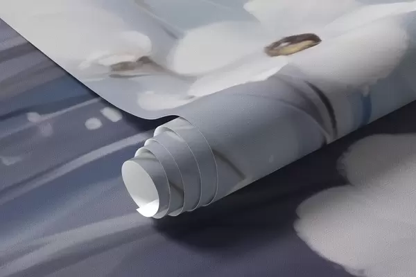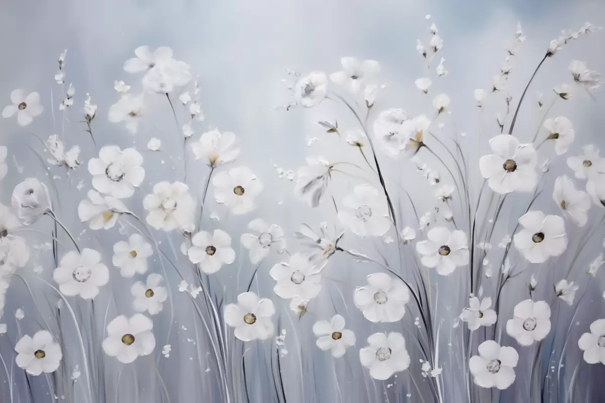Wall murals White flowers against a blue sky in oil painting style Nr. w09516