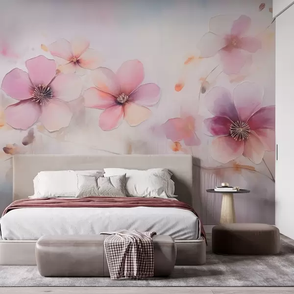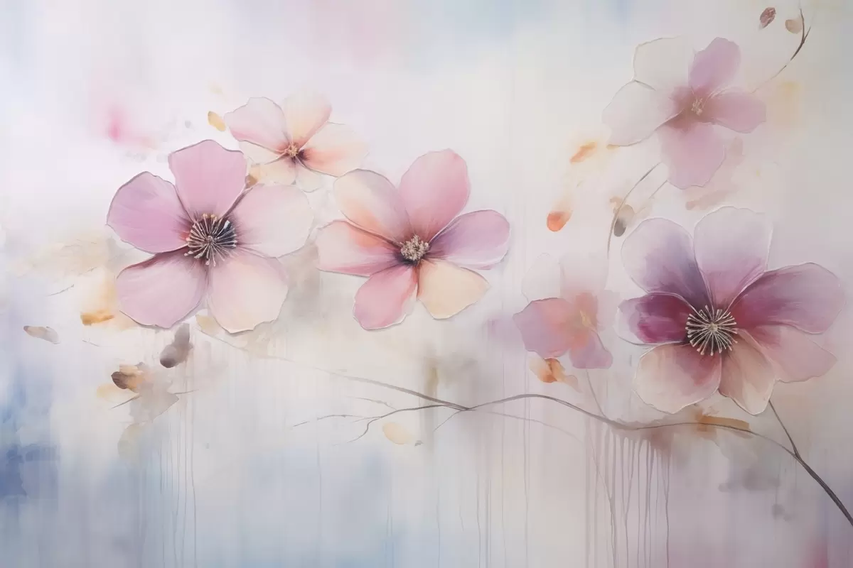 Wall murals Branch with pink flowers in watercolor style Nr. w09522