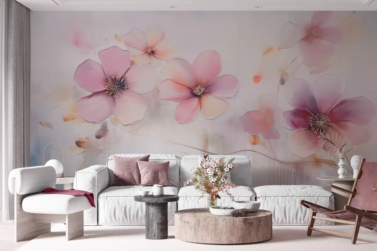 Wall murals Branch with pink flowers in watercolor style Nr. w09522