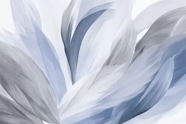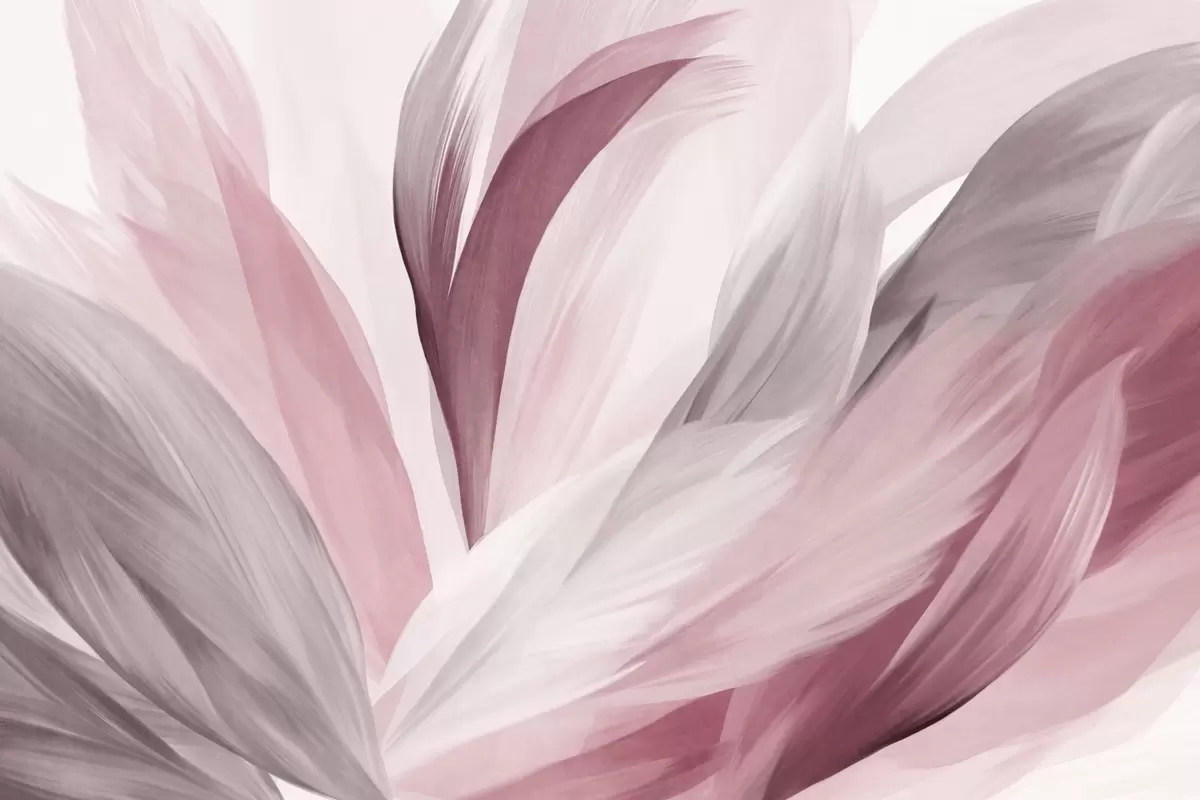 Wall murals Abstract textured feathers in pink, white, and gray and various shades, overlapping on a white background Nr. w09531v2