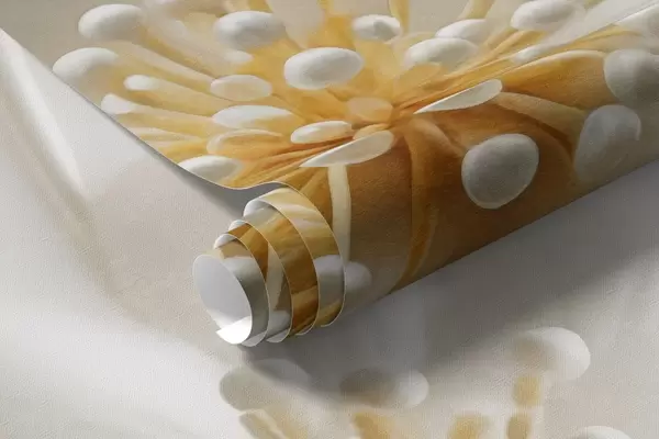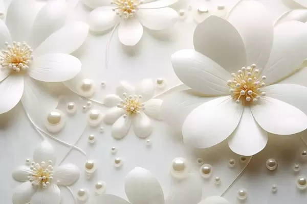 Wall murals White flowers with pearls scattered on a white background, elegant and minimalist design, textured Nr. w09535