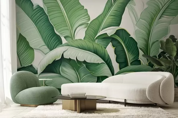 Wall murals Green tropical banana leaves with a 3d effect Nr. w09559