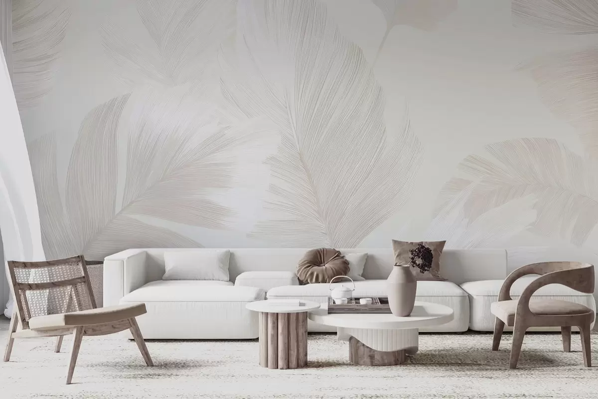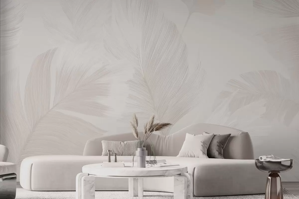 Wall murals Soft ivory feathers in milky beige tones Nr. w09563