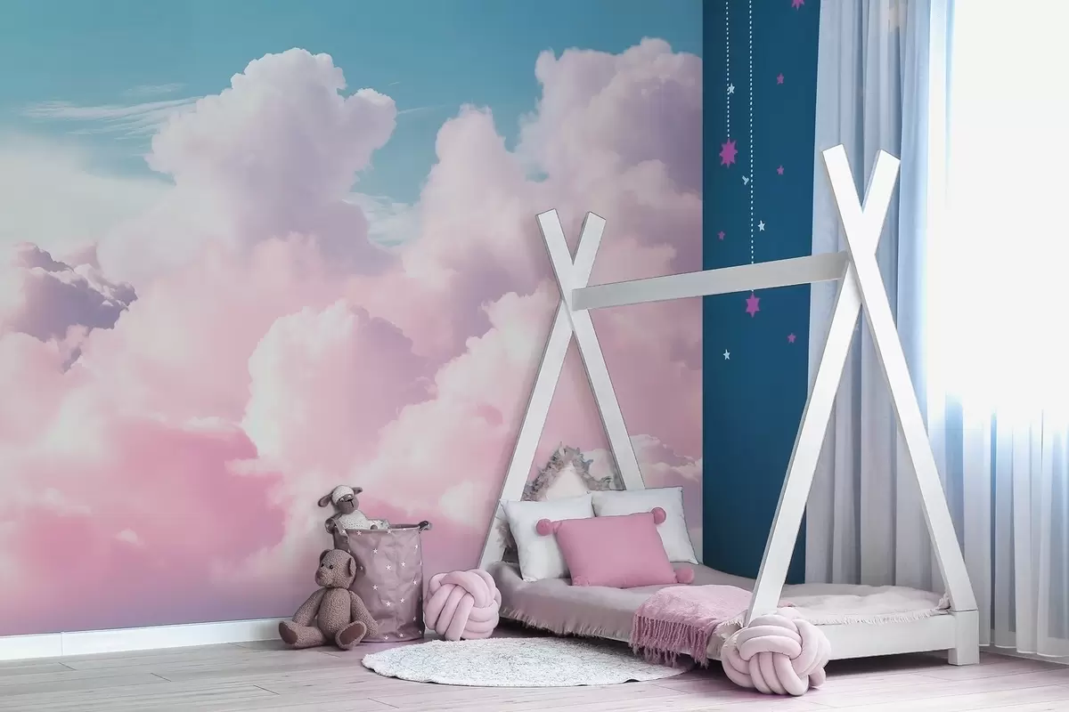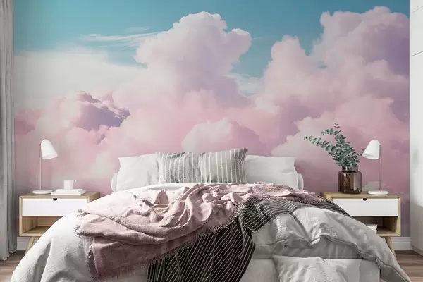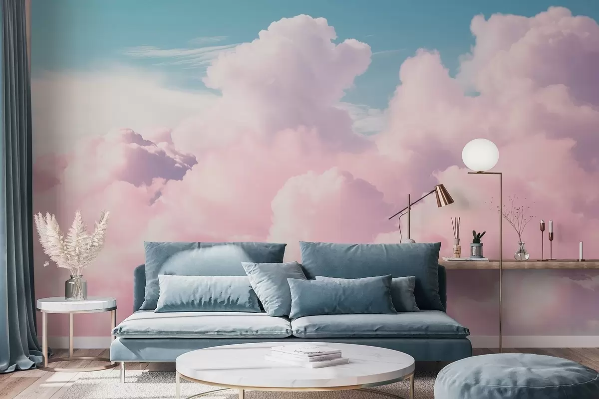 Wall murals Soft airy pink clouds in a blue sky Nr. w09569