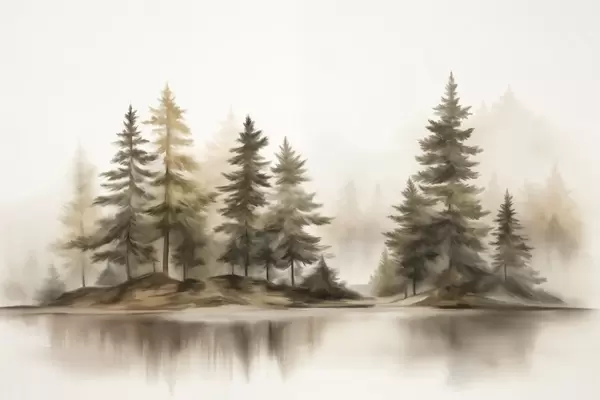 Wall murals A textured foggy forest with tall pine trees painting imitation Nr. w09610