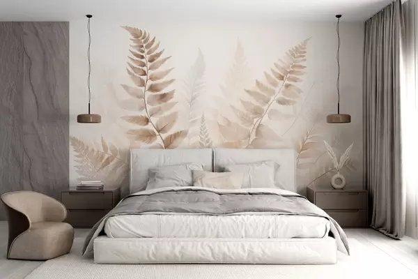 Wall murals Textured dried fern fronds in various shades of brown, with a soft, light background in watercolor style Nr. w09615