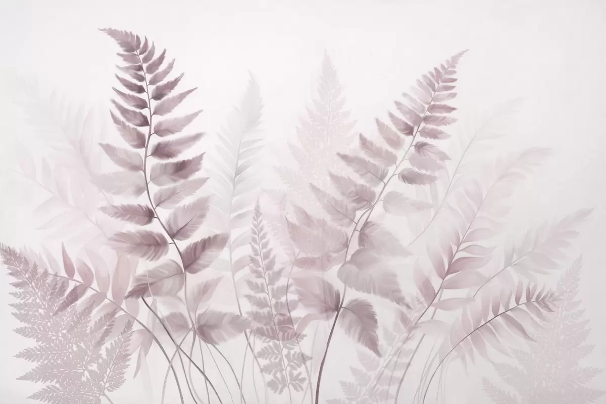 Wall murals Textured dried fern fronds in various shades of pink, with a soft, light background in watercolor style Nr. w09615v2